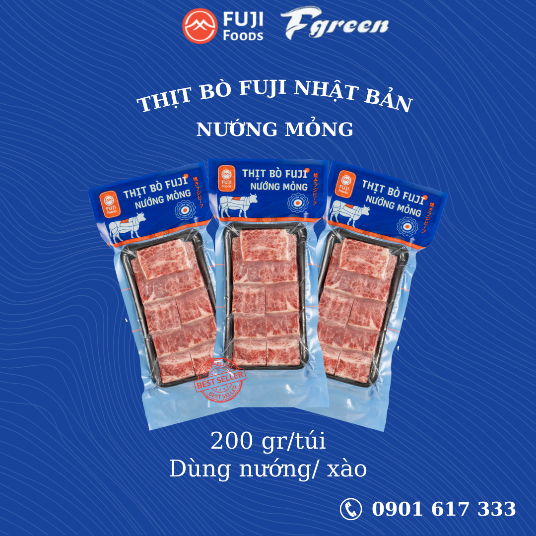 • Thịt bò FUJI được chế biến từ phần thăn lưng ngon nhất của những con bò được nuôi và chăm sóc theo quy chuẩn quốc tế tại Nhật Bản và Úc.